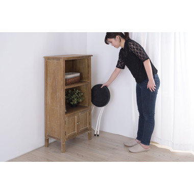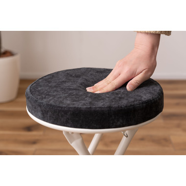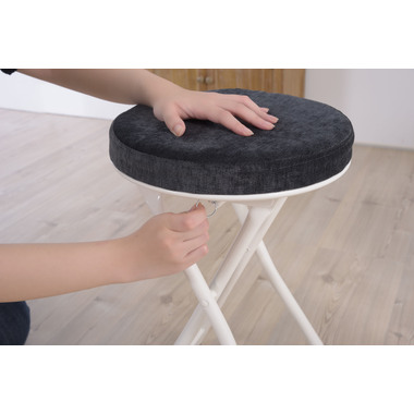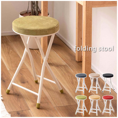 ●座り心地の良い厚みのある座面。●程よく弾力があるので、いつまでも座っていられる座り心地。●脚を広げた状態で持ち上げても脚が閉じないよう、座面下にバネ式のロック付き。●折りたたみ式なので使わない時はすっきりとコンパクト収納。●リビング、ダイニング、キッチン、洗面所、玄関周りのちょっとした隙間に収納可能。●軽量仕様なのでお掃除の時の移動や持ち運びもらくらく。●座面には手触りが良く高級感のあるベロア調生地を使用。●座面サイズは30cmと使いやすいサイズ。来客用に、作業用に、ちょっと休憩用に便利なサイズ。●脚先キャップが付いているので床への傷防止にもなり安心。