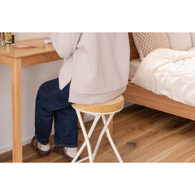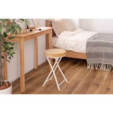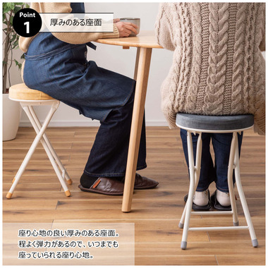 ●座り心地の良い厚みのある座面。●程よく弾力があるので、いつまでも座っていられる座り心地。●脚を広げた状態で持ち上げても脚が閉じないよう、座面下にバネ式のロック付き。●折りたたみ式なので使わない時はすっきりとコンパクト収納。●リビング、ダイニング、キッチン、洗面所、玄関周りのちょっとした隙間に収納可能。●軽量仕様なのでお掃除の時の移動や持ち運びもらくらく。●座面には手触りが良く高級感のあるベロア調生地を使用。●座面サイズは30cmと使いやすいサイズ。来客用に、作業用に、ちょっと休憩用に便利なサイズ。●脚先キャップが付いているので床への傷防止にもなり安心。