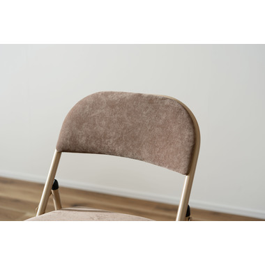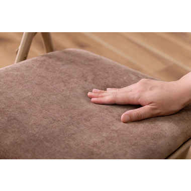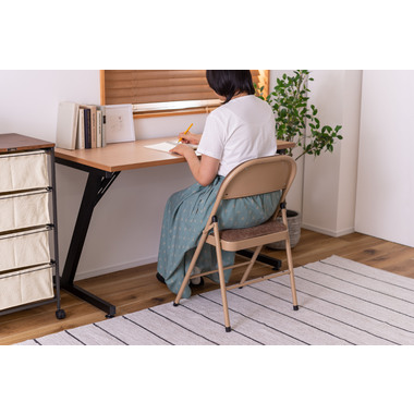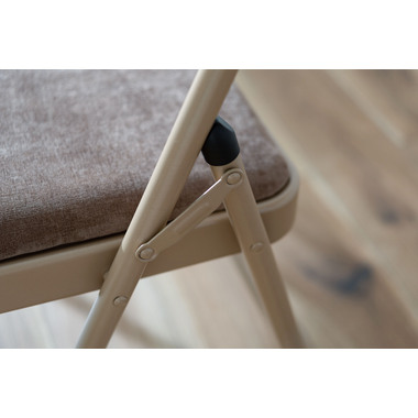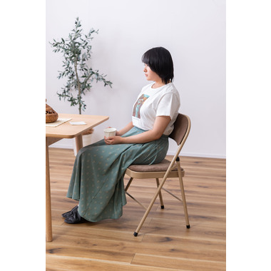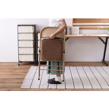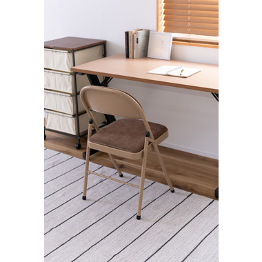 ■実用的でおしゃれなフォールディングチェア/オフィスワークやテレワークなど、様々なシーンで活躍する『フォールディングチェア』。上品な色合いのスチールと高級感を感じるベロア調の生地がハイセンスな空間を演出してくれます。一般的なパイプ椅子のイメージを覆すおしゃれなデザインです。■折りたたんで隙間に収納/折りたたみ時の厚さは僅か9cm。使わないときはサッと折りたたんで、お部屋のちょっとした隙間に収納しておくことができます。■ベロア調の生地/座面と背もたれはベロア調の生地を使用しており、さらさらとした気持ちいい肌触りが特徴です。また、張地の中に入っているふかふかのクッション材が、座った時に負担がかかりやすい背中とお尻を優しく受け止めてくれます。■美しい仕上がりのスチール/本体のスチールフレームにはベージュカラーを採用し、上品で美しい見た目に仕上げました。■床キズ防止用の脚キャップ/床へのダメージや安全面に配慮して脚先にキャップを取り付けました。滑りにくく、床にも傷がつきにくいので、フローリングの床でも安心して使用できます。■おしゃれな5種類のくすみカラー/ベーシックでさまざまなテイストの空間に合わせやすい合計5色のラインナップ。オフィスや会議室、リビングなど使用シーンに合わせてコーディネートが可能です。