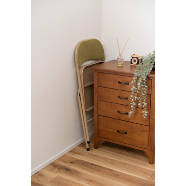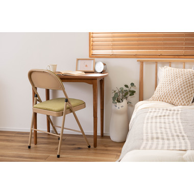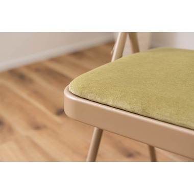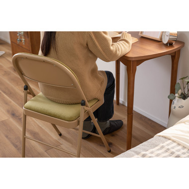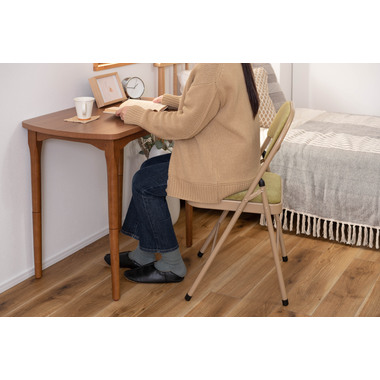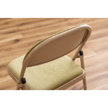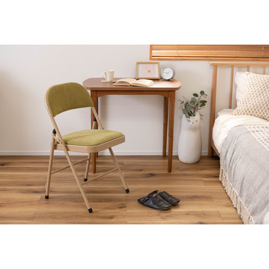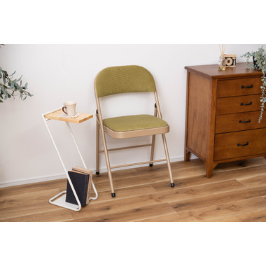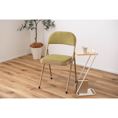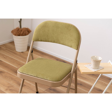 ■実用的でおしゃれなフォールディングチェア/オフィスワークやテレワークなど、様々なシーンで活躍する『フォールディングチェア』。上品な色合いのスチールと高級感を感じるベロア調の生地がハイセンスな空間を演出してくれます。一般的なパイプ椅子のイメージを覆すおしゃれなデザインです。■折りたたんで隙間に収納/折りたたみ時の厚さは僅か9cm。使わないときはサッと折りたたんで、お部屋のちょっとした隙間に収納しておくことができます。■ベロア調の生地/座面と背もたれはベロア調の生地を使用しており、さらさらとした気持ちいい肌触りが特徴です。また、張地の中に入っているふかふかのクッション材が、座った時に負担がかかりやすい背中とお尻を優しく受け止めてくれます。■美しい仕上がりのスチール/本体のスチールフレームにはベージュカラーを採用し、上品で美しい見た目に仕上げました。■床キズ防止用の脚キャップ/床へのダメージや安全面に配慮して脚先にキャップを取り付けました。滑りにくく、床にも傷がつきにくいので、フローリングの床でも安心して使用できます。■おしゃれな5種類のくすみカラー/ベーシックでさまざまなテイストの空間に合わせやすい合計5色のラインナップ。オフィスや会議室、リビングなど使用シーンに合わせてコーディネートが可能です。