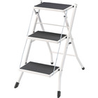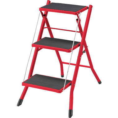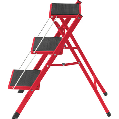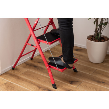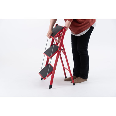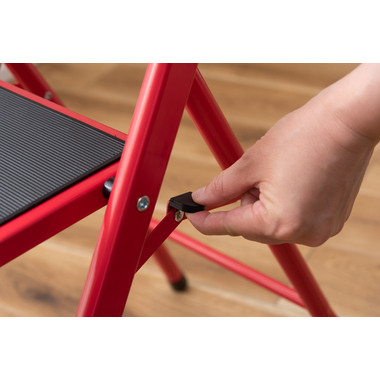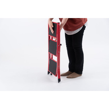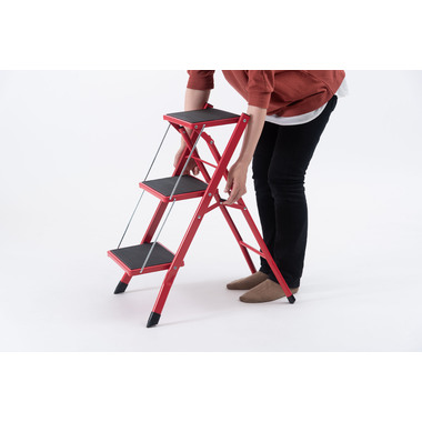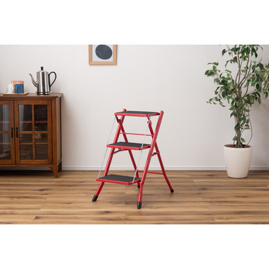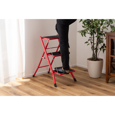 ●大人が乗ってもしっかりと支えてくれる、耐荷重量の踏み台。ステップ部分に乗ったまま物を取ったり、電球を変えたりするなどの軽作業も安心して行なうことが出来ます。