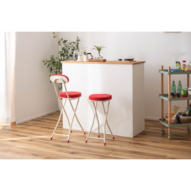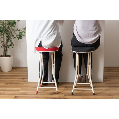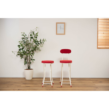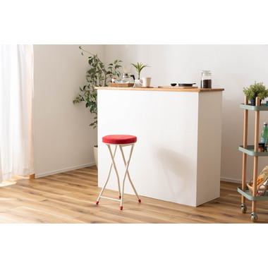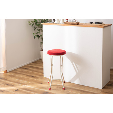●人気の折りたたみスツールにハイバージョンが登場。●コンパクト感はそのままに、カウンターや高めのテーブルなどにピッタリのサイズ。●クッション性抜群で座り心地の良い分厚い座面。●安心のロック付き。●軽量なので持ち運びもラクラク。●折りたたみ式(フォールディング式)なので、隙間収納に最適。●ベロア生地のように細かく起毛した手触りの良い生地。●脚先キャップは座面の色と同色に揃えたデザイン。床への傷防止にもなり安心です。