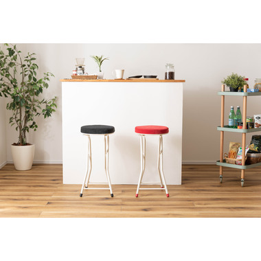 ●人気の折りたたみスツールにハイバージョンが登場。●コンパクト感はそのままに、カウンターや高めのテーブルなどにピッタリのサイズ。●クッション性抜群で座り心地の良い分厚い座面。●安心のロック付き。●軽量なので持ち運びもラクラク。●折りたたみ式(フォールディング式)なので、隙間収納に最適。●ベロア生地のように細かく起毛した手触りの良い生地。●脚先キャップは座面の色と同色に揃えたデザイン。床への傷防止にもなり安心です。