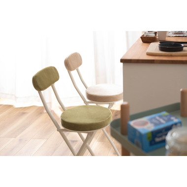 ●人気の折りたたみチェアにハイバージョンが登場。●コンパクト感はそのままに、カウンターや高めのテーブルなどにピッタリのサイズ。●クッション性抜群で座り心地の良い分厚い座面。●安心のロック付き。●軽量なので持ち運びもラクラク。●折りたたみ式(フォールディング式)なので、隙間収納に最適。●ベロア生地のように細かく起毛した手触りの良い生地。●脚先キャップは座面の色と同色に揃えたデザイン。床への傷防止にもなり安心です