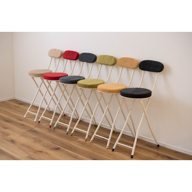 ●人気の折りたたみチェアにハイバージョンが登場。●コンパクト感はそのままに、カウンターや高めのテーブルなどにピッタリのサイズ。●クッション性抜群で座り心地の良い分厚い座面。●安心のロック付き。●軽量なので持ち運びもラクラク。●折りたたみ式(フォールディング式)なので、隙間収納に最適。●ベロア生地のように細かく起毛した手触りの良い生地。●脚先キャップは座面の色と同色に揃えたデザイン。床への傷防止にもなり安心です