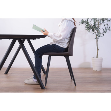 しっとりとした肌触りの張地とスタイリッシュなスチール脚が特徴的なラルジュチェア