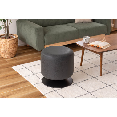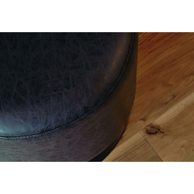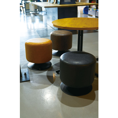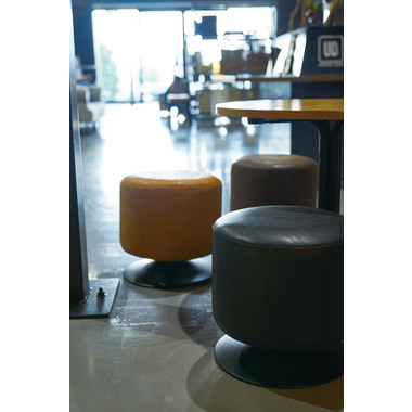 ●本革のような風合いのソフトレザーを使用した360°回転するスツール。