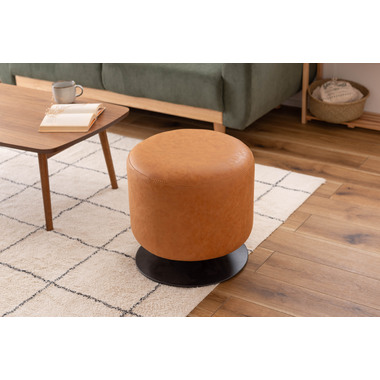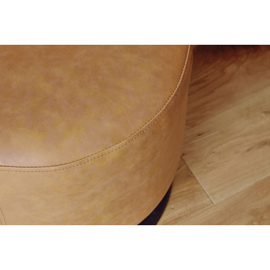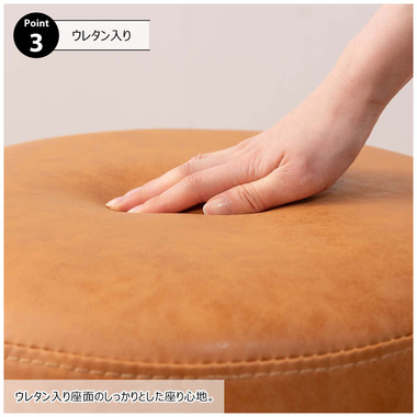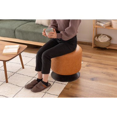 ●本革のような風合いのソフトレザーを使用した360°回転するスツール。