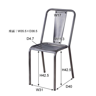 スチールの質感を生かし、シンプルなデザインに仕上げたチェア。