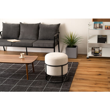 クッションをブラックスチールが包み込む、シンプルなデザインのスツール。
