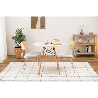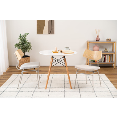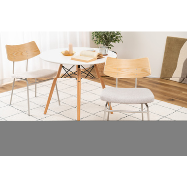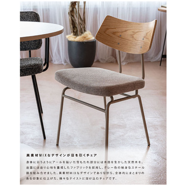 ●異素材MIXなデザインでありながら、全体的にまとまりのある印象に仕上げたチェア。