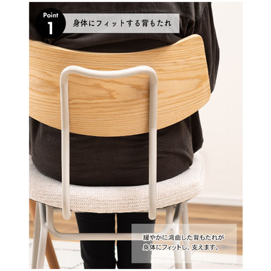 ●身体に沿うようにアールを描いた背もたれ部分には木目を活かした天然木を使用。