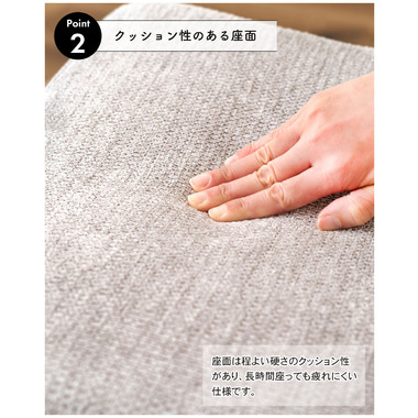 ●座面は程よい硬さのクッション性があり、長時間座っても疲れにくい仕様。