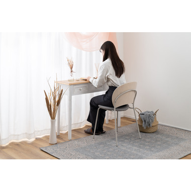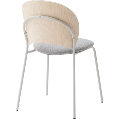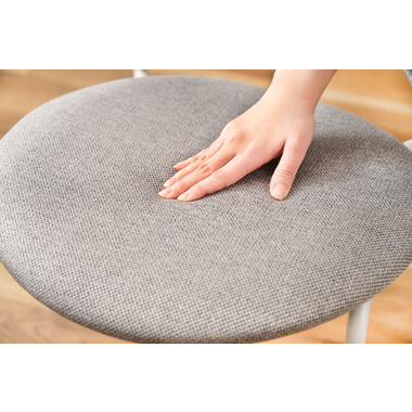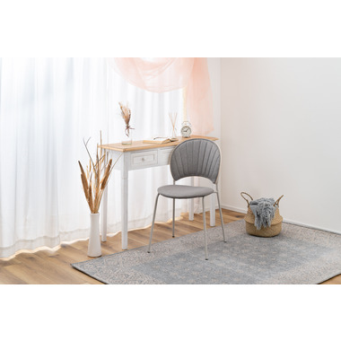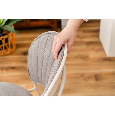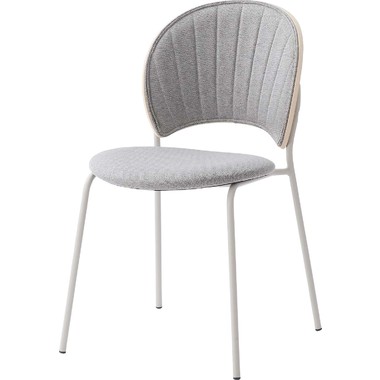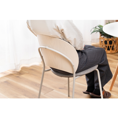 柔らかい曲線と優しいカラーリング まるで貝殻のようなデザインが目を引くチェア。スタイリッシュなライトグレー色の脚とペールカラーの生地の組み合わせが優しい雰囲気を演出します。