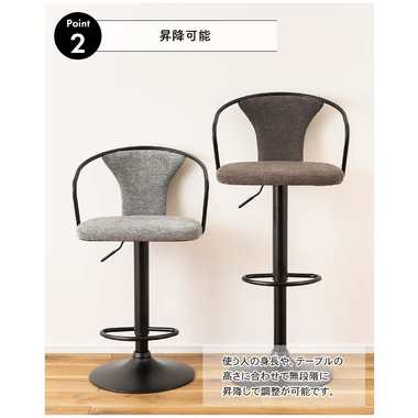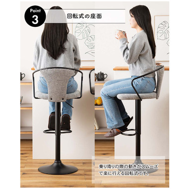 ●アームチェアタイプでゆったりと身体を預けられるカウンターチェア。