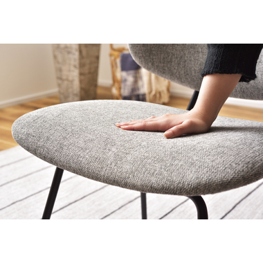 ●ボリュームのある背もたれでからだをしっかりと支え、広い座面はゆったりとした座り心地。●座面、背もたれの厚み、幅をしっかり取っているのでゆったりと座ることができ、ダイニングチェアだけではなくリビングでくつろぐ際に使用する椅子としてもおすすめ。●BK(ブラック)にはクロスレザー(レザーのような風合いのポリエステル生地)を採用。本革や合皮と違い通気性もよいため、暑い時に汗でベタついたり、寒いときの冷たくひんやりという不快感がありません。●GY(グレー)とPP(パープル)は手触りの良いファブリック生地を使用。●新色のパープルカラーは華やかで落ち着いた高級感と存在感があり、インテリアコーディネートでも使えるカラーの一つ。空間を大人の雰囲気に演出するだけではなくリゾート感を演出させる効果もあります。●脚先には床への傷防止にもなる保護キャップが付いているので安心です。