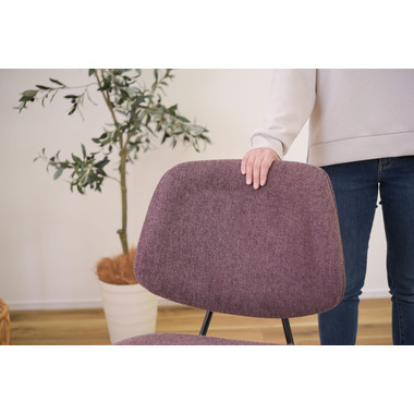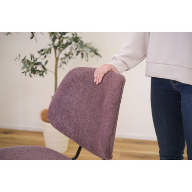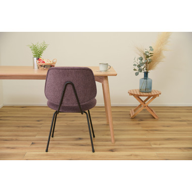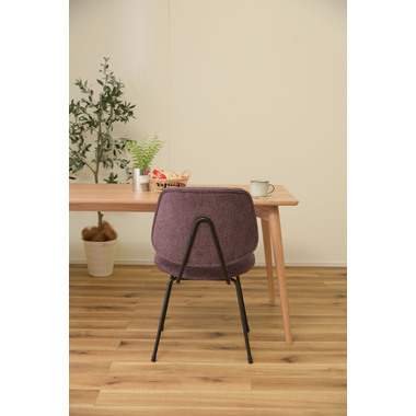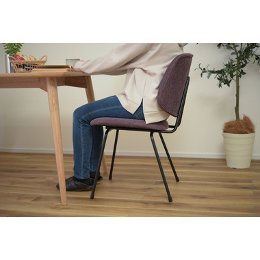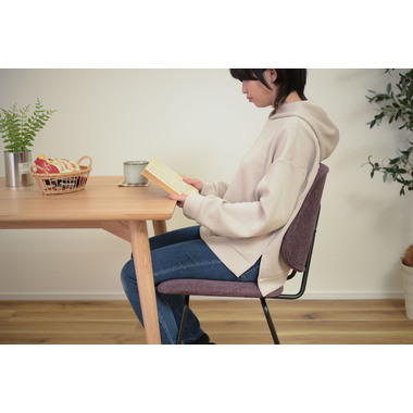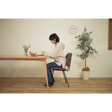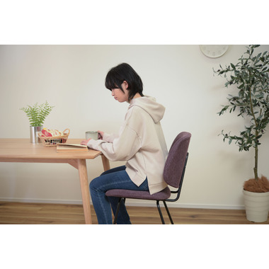 ●ボリュームのある背もたれでからだをしっかりと支え、広い座面はゆったりとした座り心地。●座面、背もたれの厚み、幅をしっかり取っているのでゆったりと座ることができ、ダイニングチェアだけではなくリビングでくつろぐ際に使用する椅子としてもおすすめ。●BK(ブラック)にはクロスレザー(レザーのような風合いのポリエステル生地)を採用。本革や合皮と違い通気性もよいため、暑い時に汗でベタついたり、寒いときの冷たくひんやりという不快感がありません。●GY(グレー)とPP(パープル)は手触りの良いファブリック生地を使用。●新色のパープルカラーは華やかで落ち着いた高級感と存在感があり、インテリアコーディネートでも使えるカラーの一つ。空間を大人の雰囲気に演出するだけではなくリゾート感を演出させる効果もあります。●脚先には床への傷防止にもなる保護キャップが付いているので安心です。