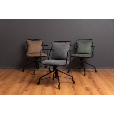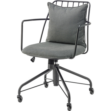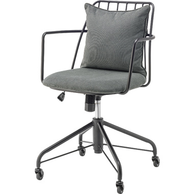 ●インテリア性の高いコーデュロイ生地を使用した、ヴィンテージテイストのデスクチェア。●フレームには強度のあるシャープな印象のスチールを使用。●座面の高さは47〜54cmまで高さ調整が可能な昇降式。シリンダーを使用しているので、手元のレバーを操作するだけの簡単仕様。●キャスター付きなので移動もらくらく。●機能性と共にデザイン性も兼ね備えたデスクチェアなので、書斎はもちろんリビング・ダイニングルームでも使えるデザイン。●ロッキング機能が付いているので、座面の前後の動きを時々の使用状況に合わせてロック・フリーどちらにも使い分けることができます。●座面下にはロッキングの強さを調整できるダイヤル付き。