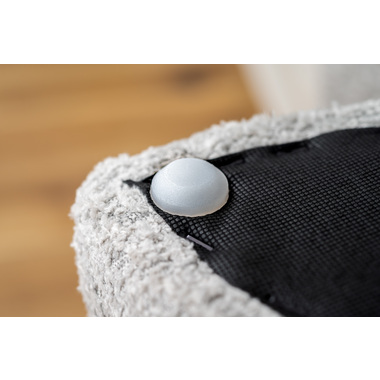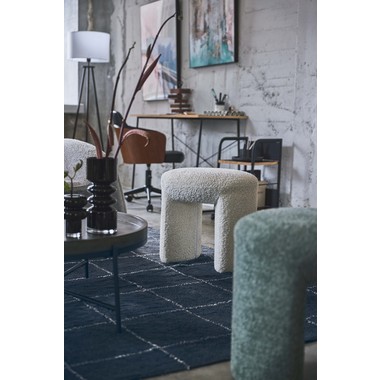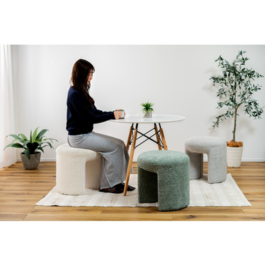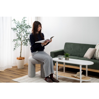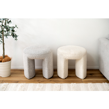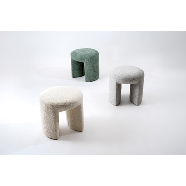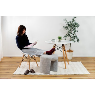 ●角の丸いフォルムが魅力的で、心地良い肌触りのブークレ生地を使用したスツール。