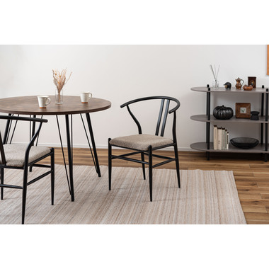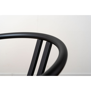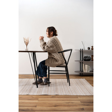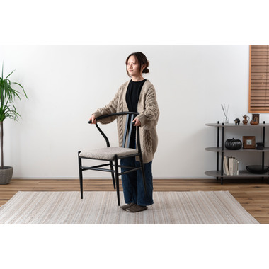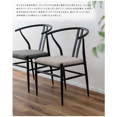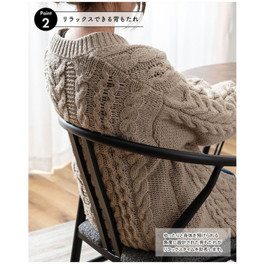 ●ゆったりと身体を預け、リラックスできる角度に設計された背もたれと、そこから伸びたハーフアームがポイントとなっているチェア。
