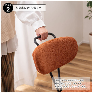 ●デザイン性の高い斬新なフォルムのチェア。●背面のクロスが特徴的でどの角度から見ても無駄のないシンプルなスタイルのアクロス。●あたたかみのある生地とインテリアになじみやすいカラー展開で様々なテイストに合わせることができます。●背中にフィットする背面。●引き出しやすい背面の取っ手。●脚先には保護キャップ付き。●スタイリッシュで強度のあるスチール脚。
