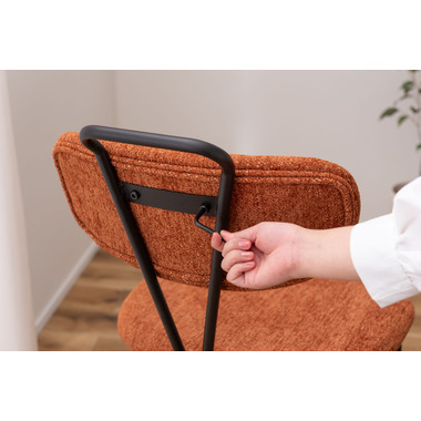 ●デザイン性の高い斬新なフォルムのチェア。●背面のクロスが特徴的でどの角度から見ても無駄のないシンプルなスタイルのアクロス。●あたたかみのある生地とインテリアになじみやすいカラー展開で様々なテイストに合わせることができます。●背中にフィットする背面。●引き出しやすい背面の取っ手。●脚先には保護キャップ付き。●スタイリッシュで強度のあるスチール脚。