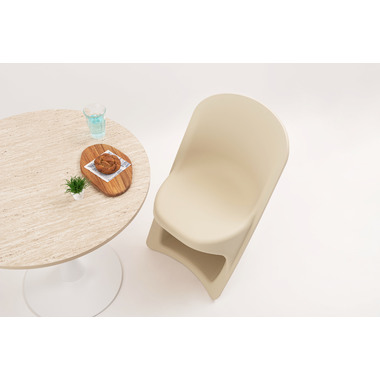 ●滑らかな曲線が生み出す独特のフォルムが目を引くスタッキングチェア。