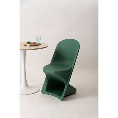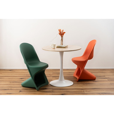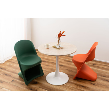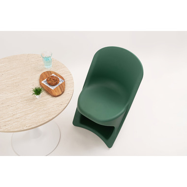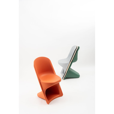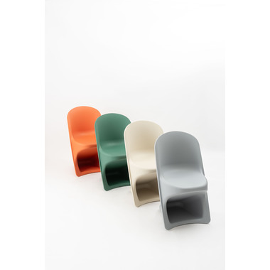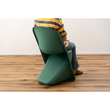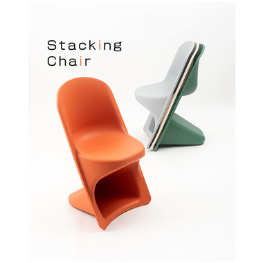 ●滑らかな曲線が生み出す独特のフォルムが目を引くスタッキングチェア。