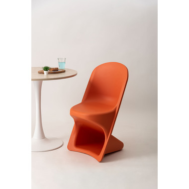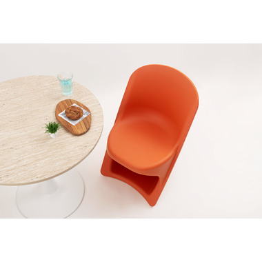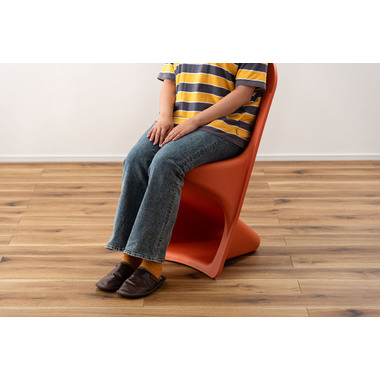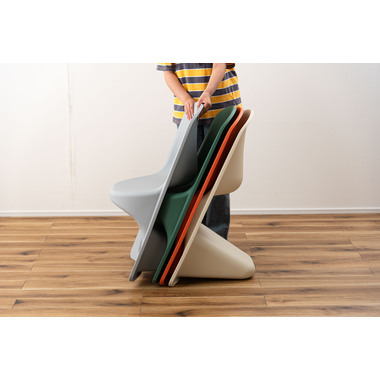 ●滑らかな曲線が生み出す独特のフォルムが目を引くスタッキングチェア。