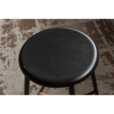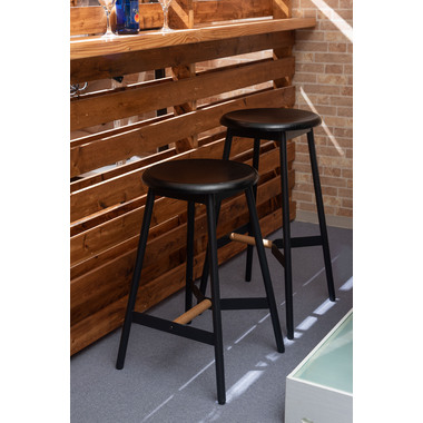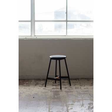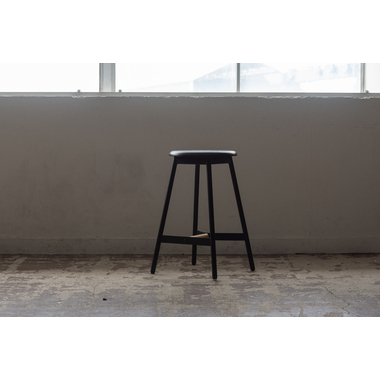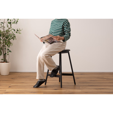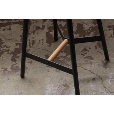 ●貫部分の個性的なフォルムとスチールの異素材感、オーク材の丸棒がアクセントとなり、『スタンダードなのに個性的』なハイスツールが誕生。