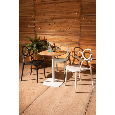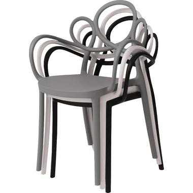 ●アーム部分の曲線がひじや手にぴったりと沿うデザイン。●汚れてもお手入れのしやすいポリプロピレン素材を使用しています。●スタッキング可能なのでコンパクトに収納できて場所を取らず、片付けも簡単です。