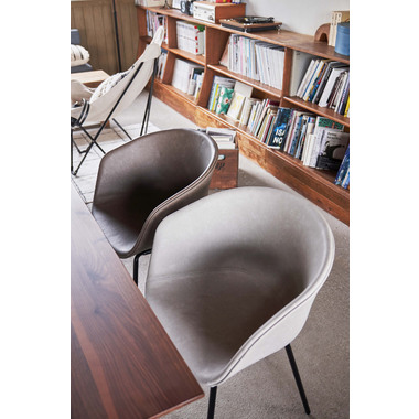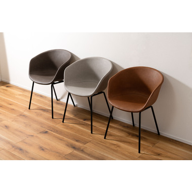 ●本革調生地のソフトレザーを使用した、高級感のあるアームチェア。