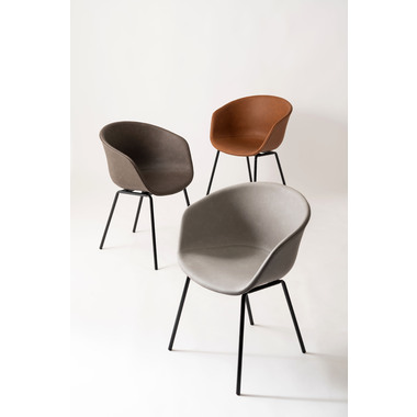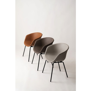 ●体をすっぽりと包み込んでくれる、座り心地の良い肘掛け付きのシェルデザイン。