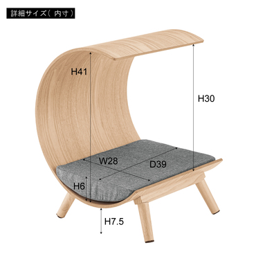●脚部には天然木ラバーウッドを使用し、フレームには天然木アッシュ(突板)を使用した、デザイン性あふれる形のペットベッド。●目を引くオブジェのようなフォルムはお部屋のアクセントにもなります。●フードのような囲われた形状になっているので、ペットも安心してくつろぐことができます。●専用マットレスは、ずれない様にゴムバンドで固定が可能。●また、カバーリング式で手洗いができるので清潔に保つことが出来ます。●工具不要で脚ねじ込みタイプの簡単組立式なので、届いたその日からお使いいただけます。