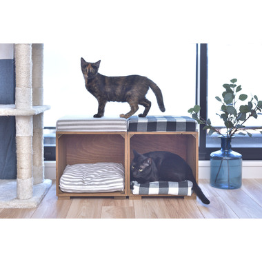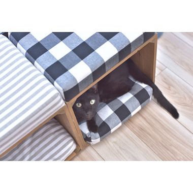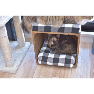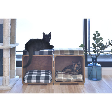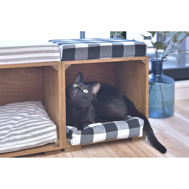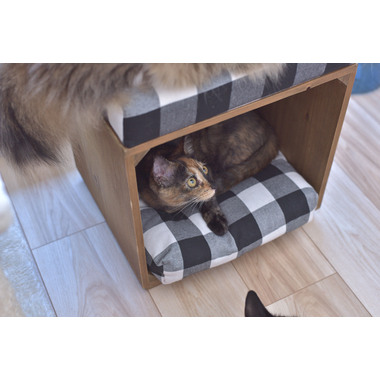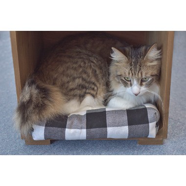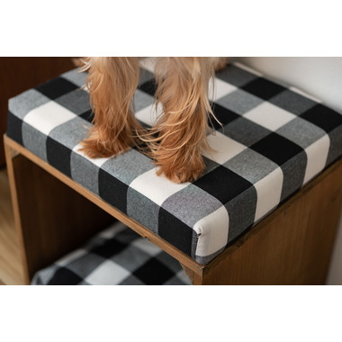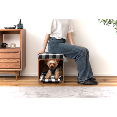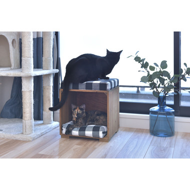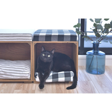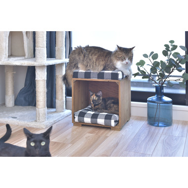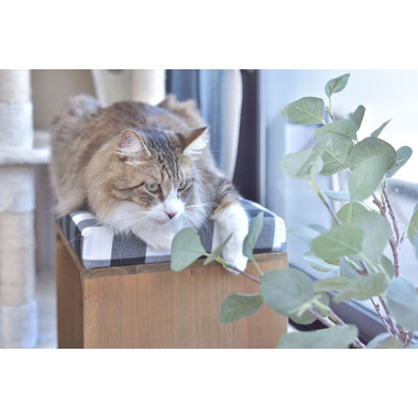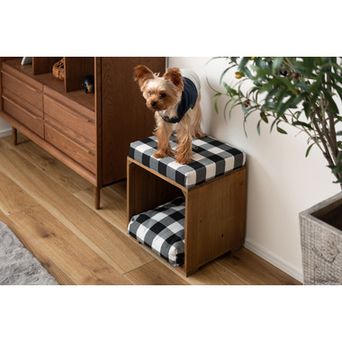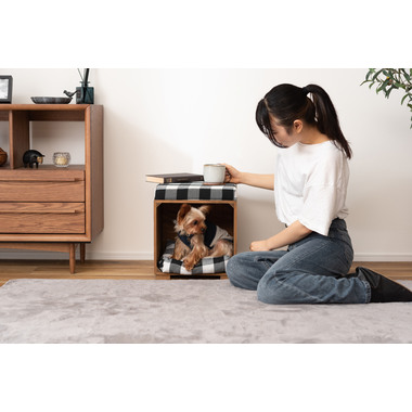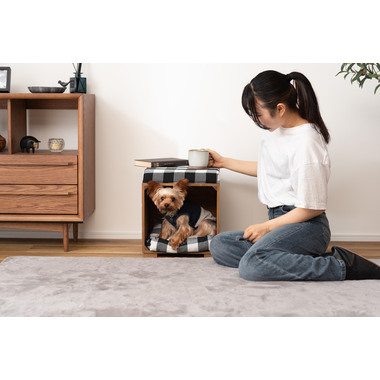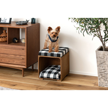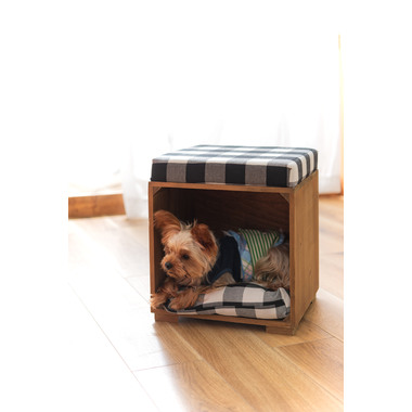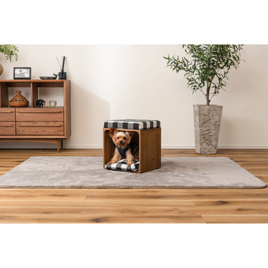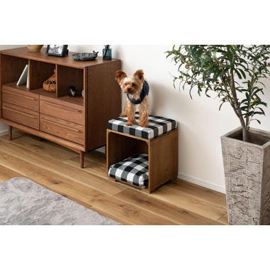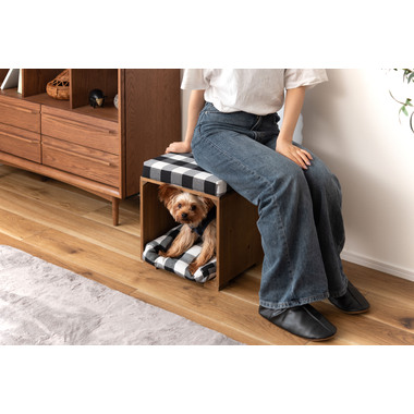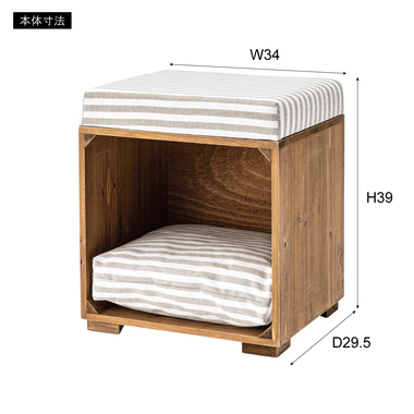 ●ペットが入れるボックス型のスツール。●ペット用クッションは取り外しが可能なので、クッションを外して収納ボックスとしても使えます(座面クッションは取り外しができません)。●ペット用クッションはカバーを外して手洗いができるので、いつでも清潔に使えます。●アンティーク感のある天然木(杉)フレームに、ナチュラルテイスト柄の生地を使用した、インテリア性の高いペットスツール。