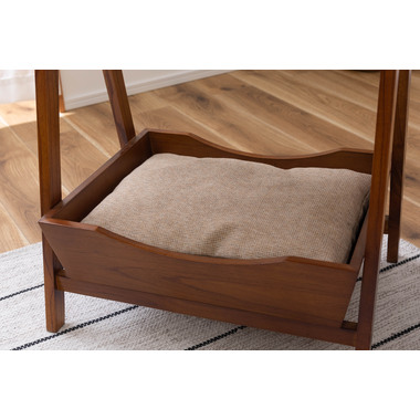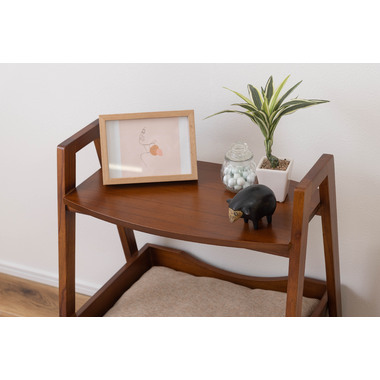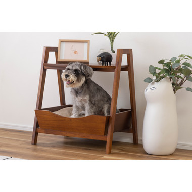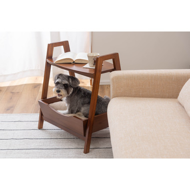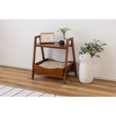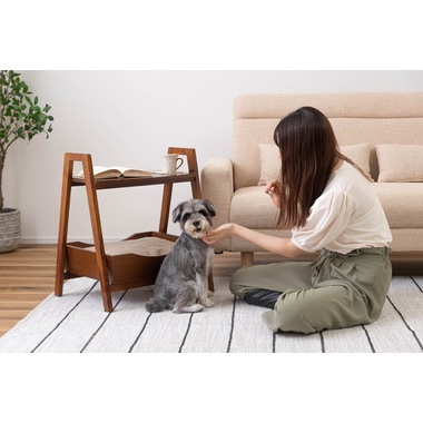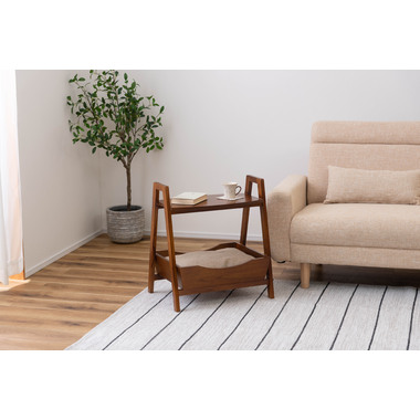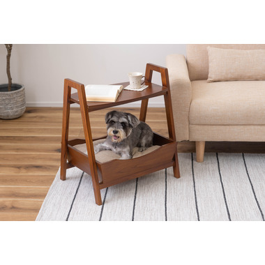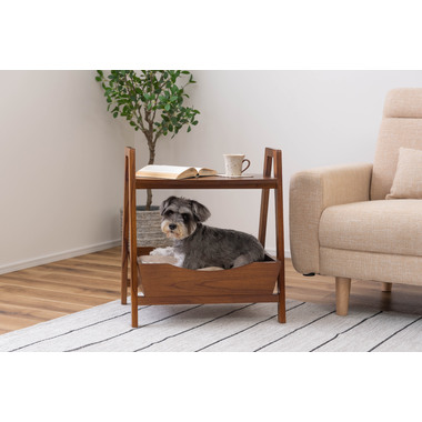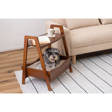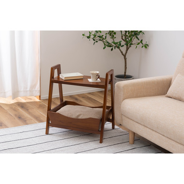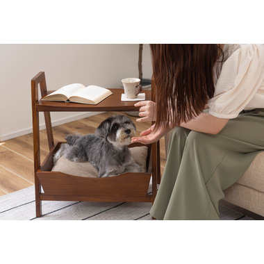 ●ペットシリーズからペットとお部屋でくつろぐために最適な「ペットサイドテーブル」が新しく登場。●取り外し可能なやわらかいクッションでペットのくつろげる場所になり、上部のテーブルはサイドテーブルとしてもお使いいただけます。●天然木のカラーと木目がぬくもりを与え、お部屋のインテリアにもとても馴染みます。●ハンドル付きのテーブルなので、ちょっとした移動にも便利です。●脚の裏にはフェルトが付いているので、床への傷防止にもなり安心。