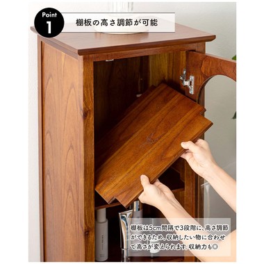 ●棚板は5cm間隔で3段階に高さ調整が可能。