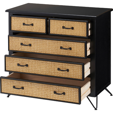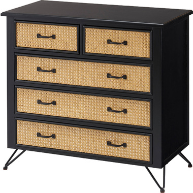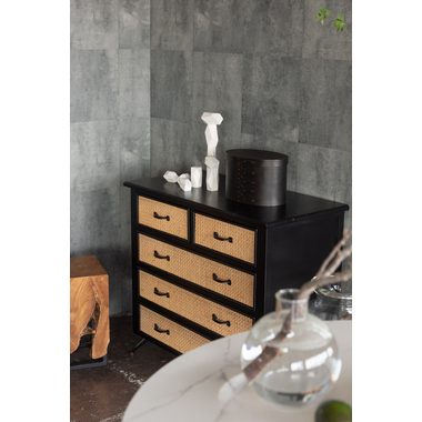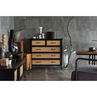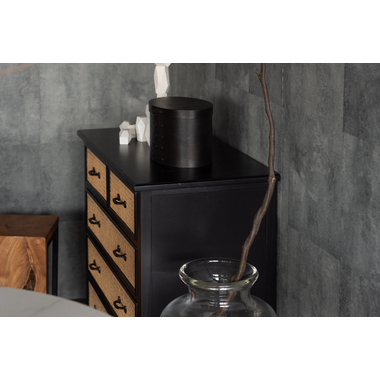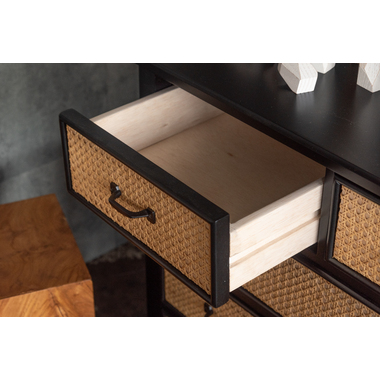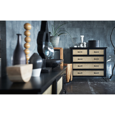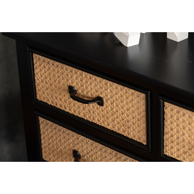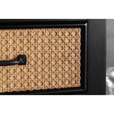 ●天然ラタンを使用したブラックカラーのTVボード&チェスト●温かみがありながら、クールな印象も与えるブラックのウッド素材と、モダンな雰囲気のある天然ラタンの組み合わせは重厚感あるブラックにラタンのベージュが差し色になり、お部屋に圧迫感を与えず抜け感のあるトレンド感溢れるデザインに。