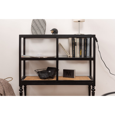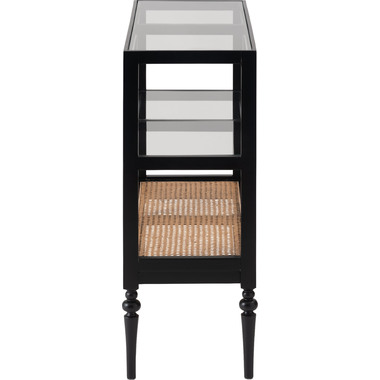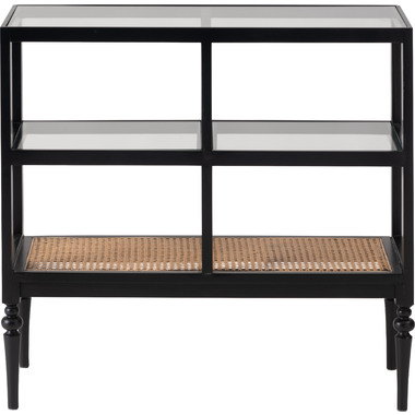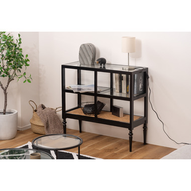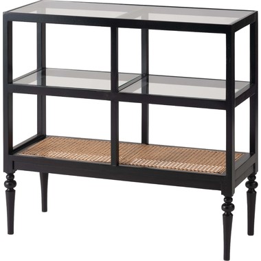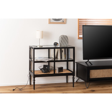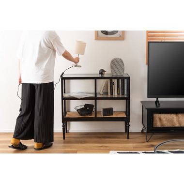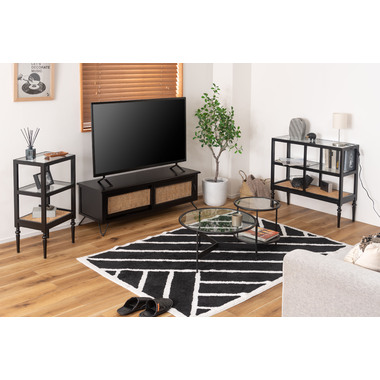 天然木とラタンを使用したナチュラルなイメージのデザインながら、ターンドレッグ(ろくろ脚)を採用することで、クラシカルな雰囲気も感じられるオープンシェルフ&サイドテーブル。ガラス天板で抜け感もあり、使いやすいサイズ感も魅力です。