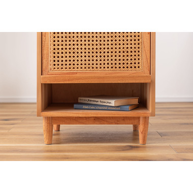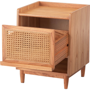 ●本体はぬくもり感じる天然木を。引き出し部分には天然ラタンを使用し、天然素材にこだわったテーブル(天然素材の為、1点1点個体差が有ります)