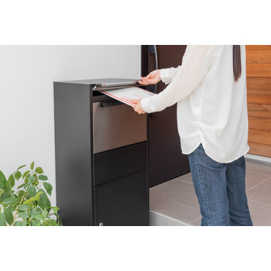 時代のニーズに合わせたスタイリッシュなデリバリーボックス。玄関に設置するだけで、小さな郵便物から大きな宅配物まで壊れず・汚れずに保管しておくことができます。鍵がついているので防犯面も安心です。