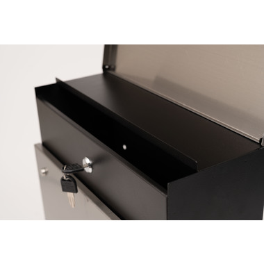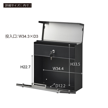 ●無駄をそぎ落としたシンプルデザインのメールボックス。●鍵穴も目立たないようにした構造となっておりスタイリッシュに仕上がっております。●本体のMAILBOXの文字は窓型(透かし)になっており、中の郵便物をわざわざ開けずに確認ができます。●カギ付きなので防犯面も安心。