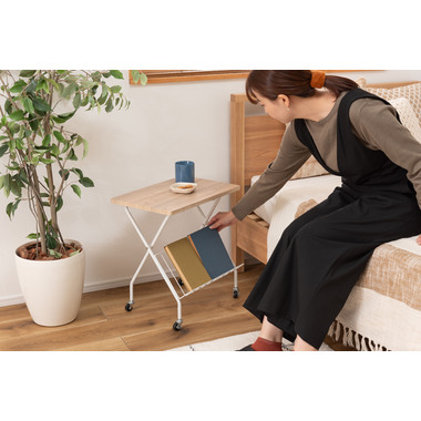 シンプルかつコンパクトな可動式のサイドテーブル。