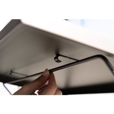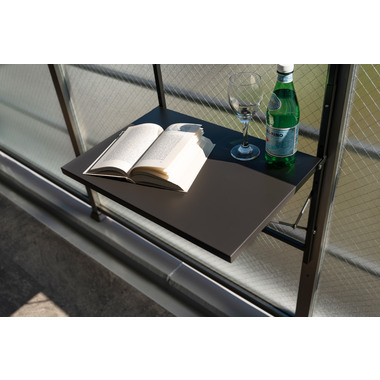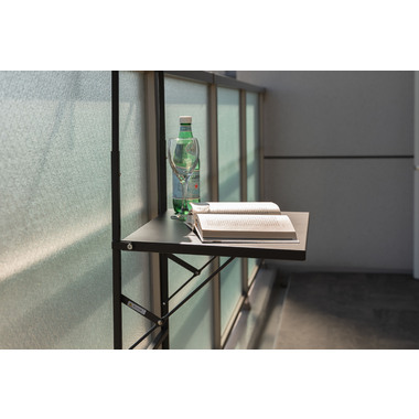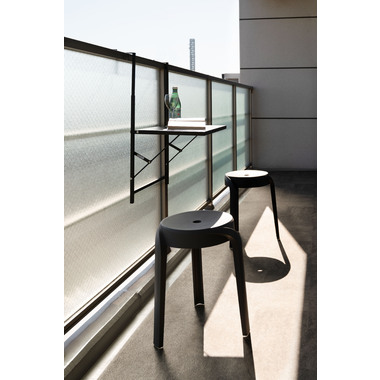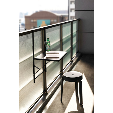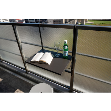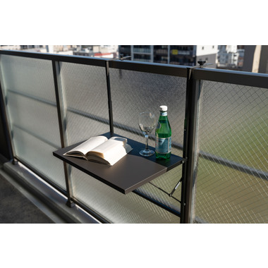 柵に引っ掛けて天板を広げれば、ベランダに自分だけの特別なテーブル空間が。