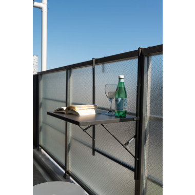 ベランダなどの柵に設置できる折りたたみテーブル