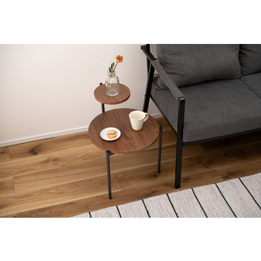 ●2つの円形天板が重なり合い空間にモダンで上品な印象をプラス。