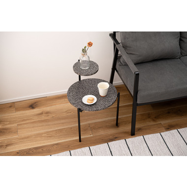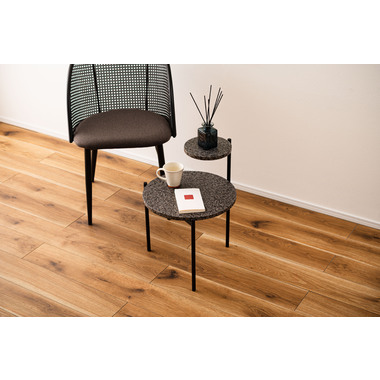 ●2つの円形天板が重なり合い空間にモダンで上品な印象をプラス。