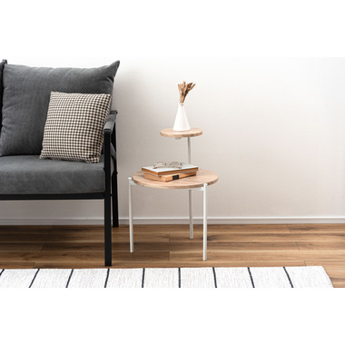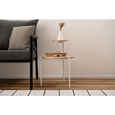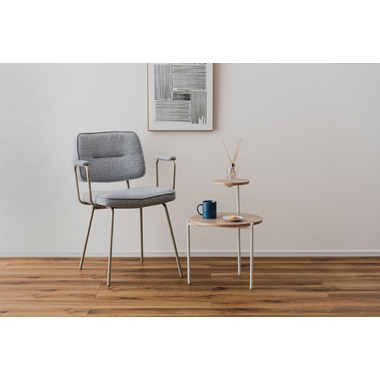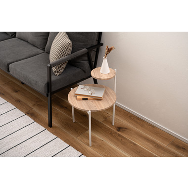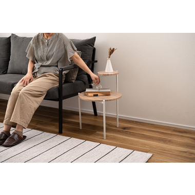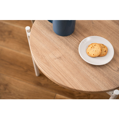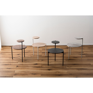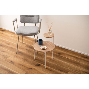 ●2つの円形天板が重なり合い空間にモダンで上品な印象をプラス。