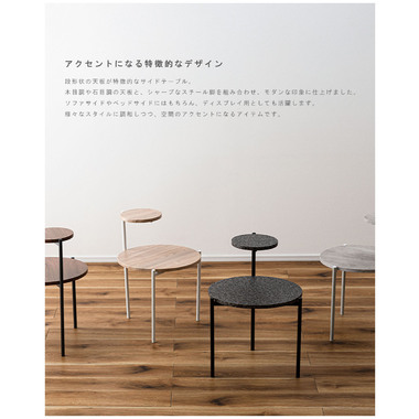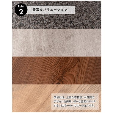 ●木目調や石目調の天板とシャープなスチール脚を組み合わせ、モダンな印象に仕上げました。