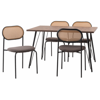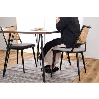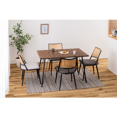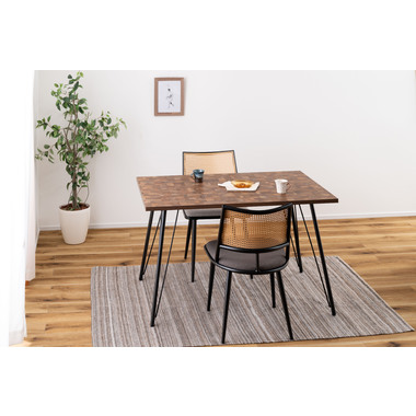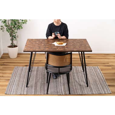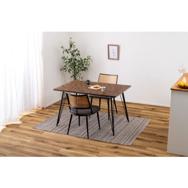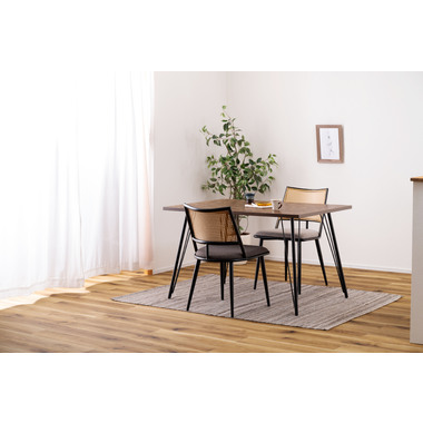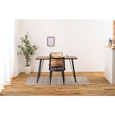 ●温もりのある木目調デザインとシンプルなアイアンが特徴のダイニングテーブル。